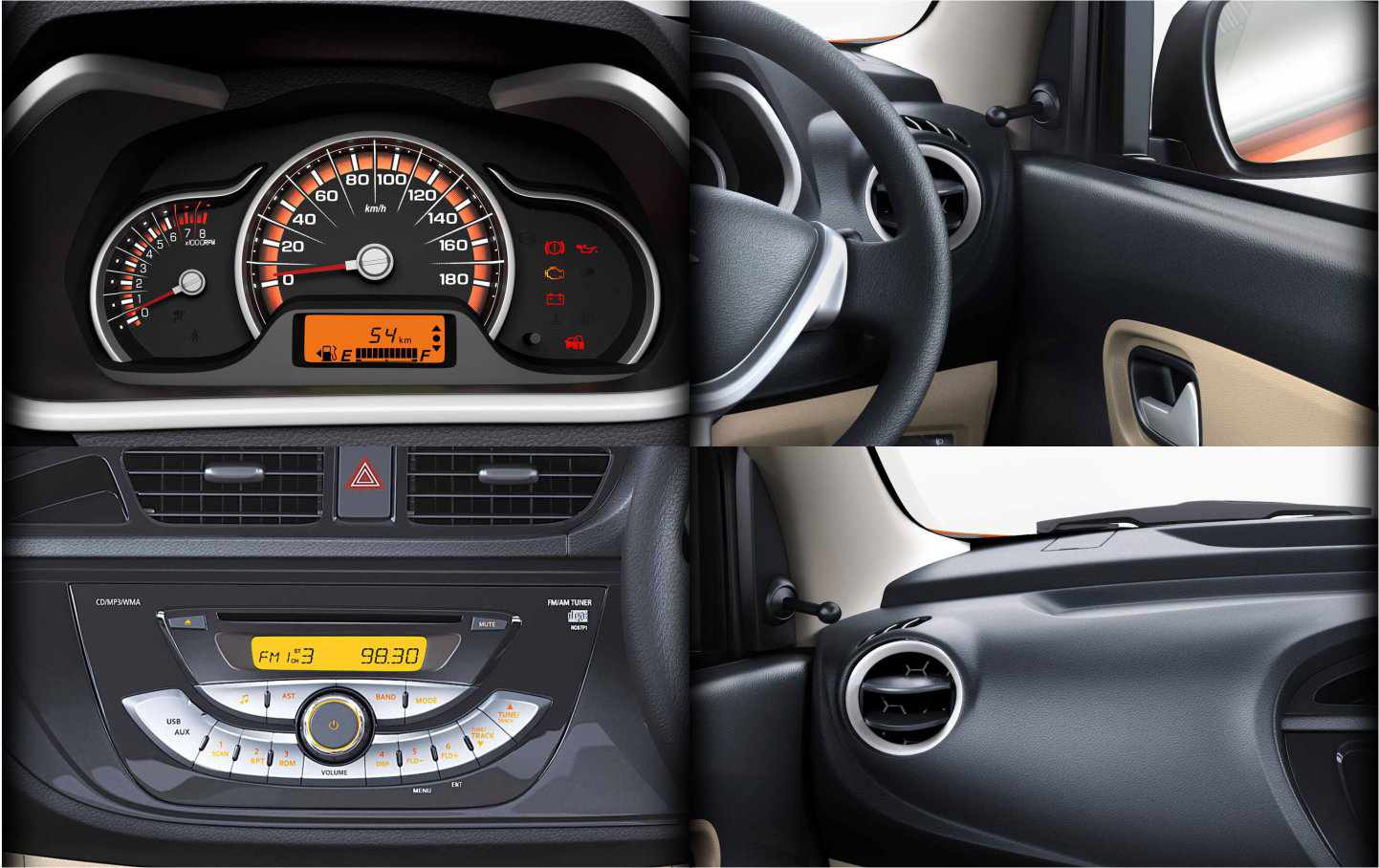 The new Alto K10 a intrepid new look that will certainly make heads turn. The dynamic lines, smooth curvature and thrilling play of finishing make the interior of the Alto K10 broad and dressy. At the core of the Alto K10 is very lightweight, yet strong 1 Litre K-Next engine. Auto Gear Shift is based on an micro electronic control element which drives the perfection hydraulic actuator to command the clutch action and the gear shifting. The fog lamps provide thee clarity so that thee can always retain your eyes on the object and adore even the misty of winters.